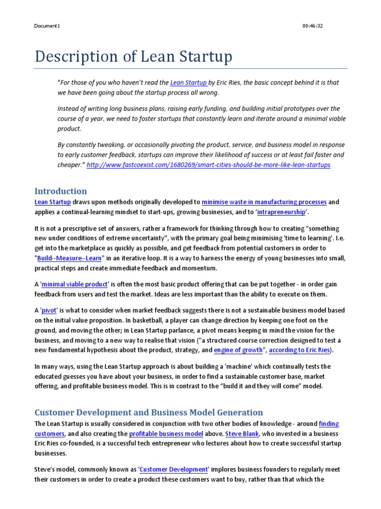 Description Of Lean Startup For Scribd V0 2 Lean Startup Tech